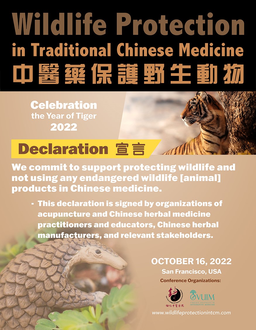 會上,紐約中醫(yī)學(xué)院、維吉尼亞整合醫(yī)學(xué)大學(xué)與全球28個(gè)專業(yè)組織院校共同簽署一份中醫(yī)藥保護(hù)野生動(dòng)物宣言:承諾保護(hù)野生動(dòng)物,中醫(yī)藥不使用瀕危野生動(dòng)物制品。
