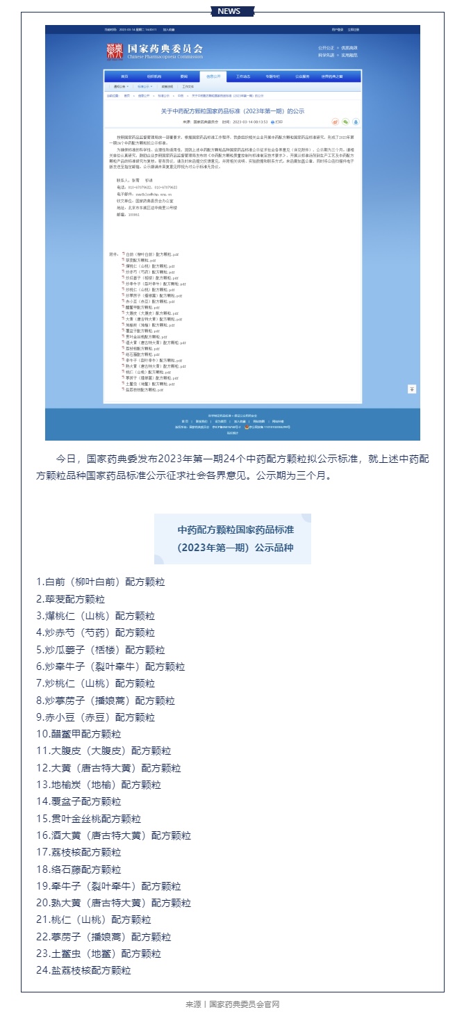 關(guān)于中藥配方顆粒國家藥品標(biāo)準(zhǔn)(2023年第一期)的公示