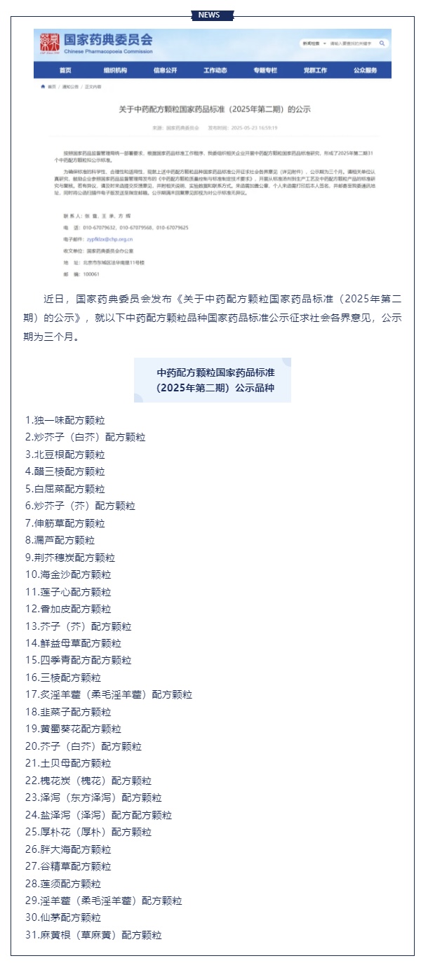 關(guān)于中藥配方顆粒國家藥品標(biāo)準(zhǔn)(2025年第二期)的公示
