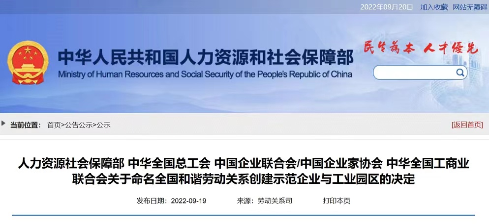9月19日,人力資源社會保障部、中華全國總工會、中國企業(yè)聯(lián)合會/中國企業(yè)家協(xié)會、中華全國工商業(yè)聯(lián)合會聯(lián)合發(fā)布《關(guān)于命名全國和諧勞動關(guān)系創(chuàng)建示范企業(yè)與工業(yè)園區(qū)的決定》,天江藥業(yè)榜上有名,榮獲“全國和諧勞動關(guān)系創(chuàng)建示范企業(yè)”稱號,系江陰市唯一一家獲此殊榮的企業(yè)。
