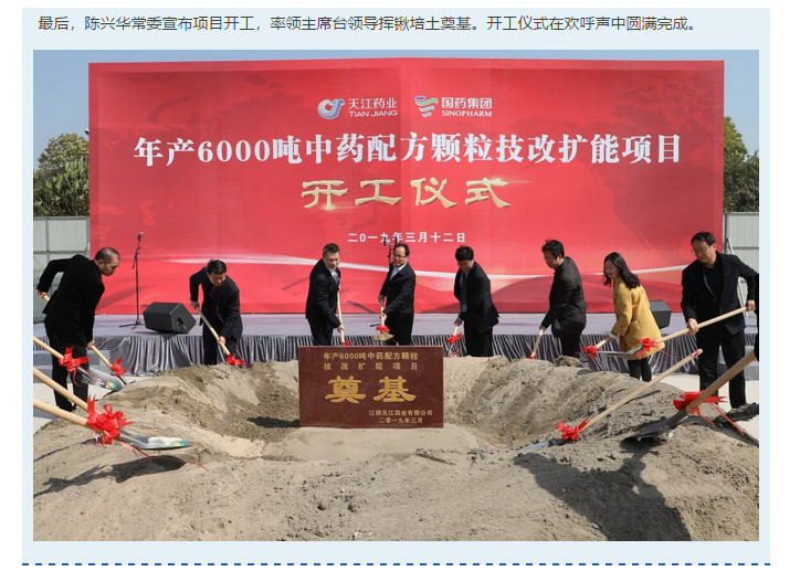 天江要聞|天江藥業(yè)“年產6000噸中藥配方顆粒技改擴能項目”開工