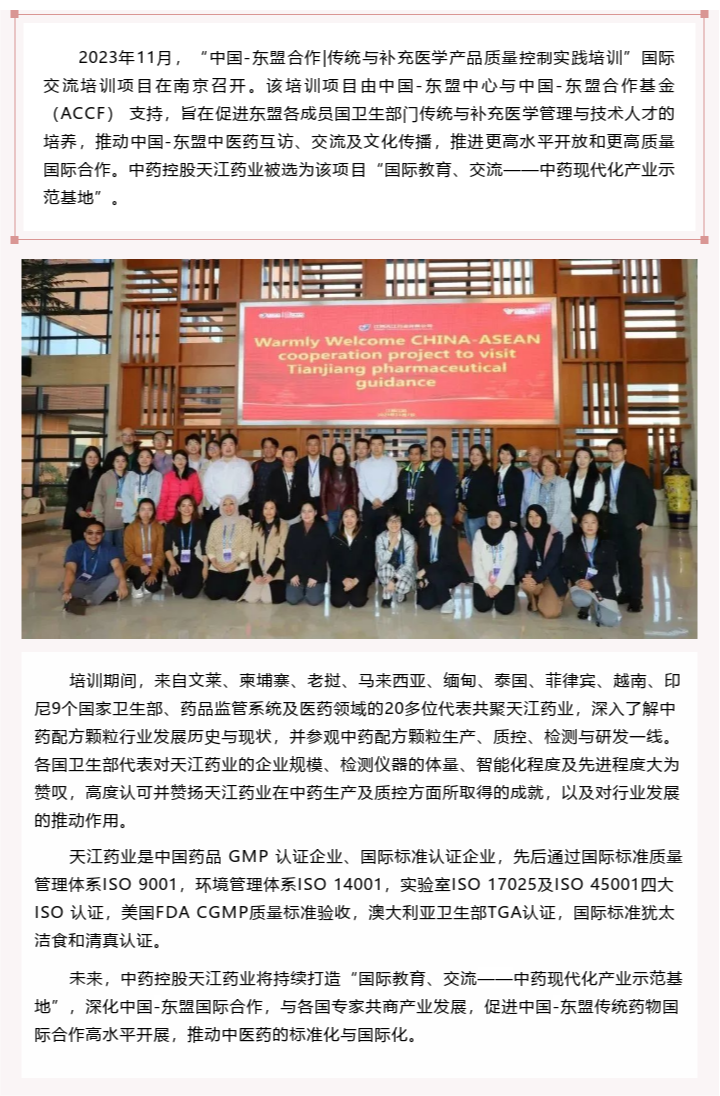 深化中國-東盟合作,推動中醫(yī)藥國際化發(fā)展——中國東盟合作項目團走進中藥控股天江藥業(yè)