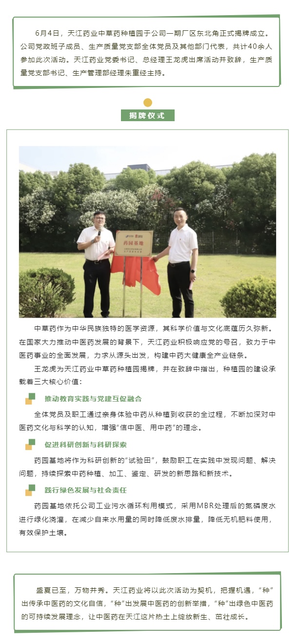 天江藥業(yè)中草藥種植園揭牌儀式圓滿舉行