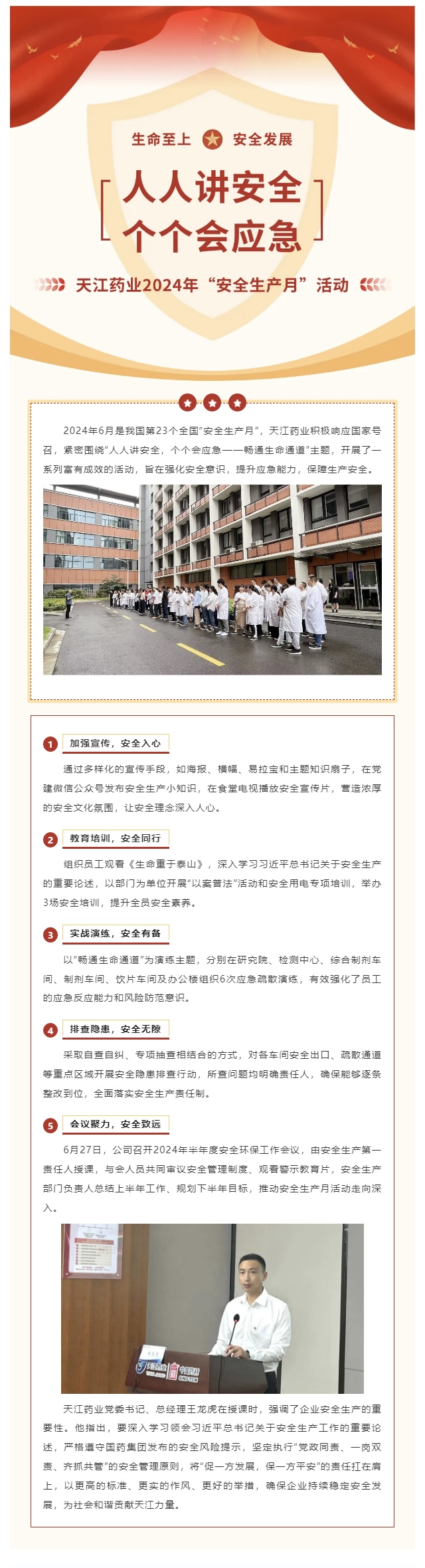 天江藥業(yè)開展2024年“安全生產(chǎn)月”系列活動
