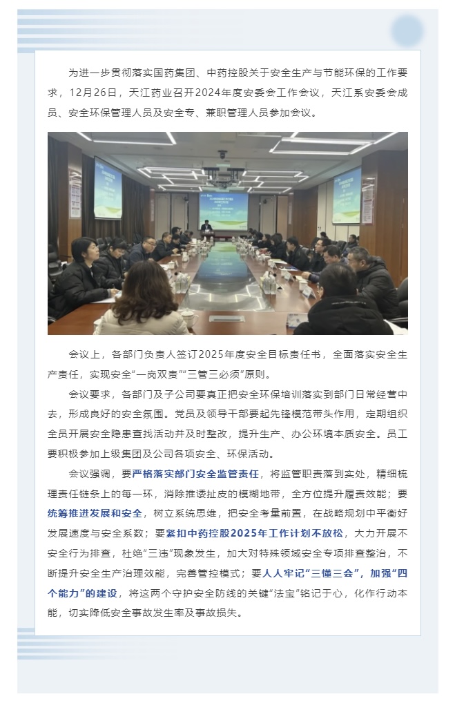 天江藥業(yè)召開2024年度安委會(huì)工作會(huì)議