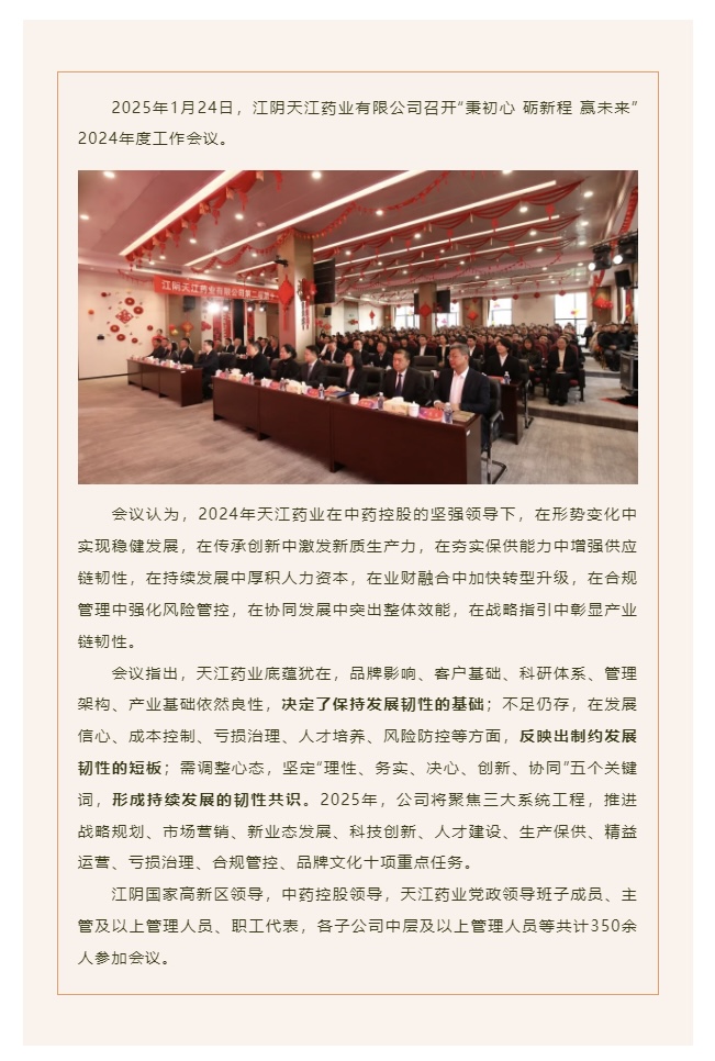 天江藥業(yè)召開(kāi)2024年度工作會(huì)議